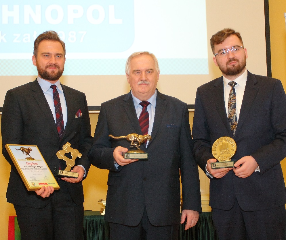 Przedstawiciele Agencji Wydawnicza „Technopol” , którzy odebrali statuetkę i dyplom Konkursu Gepardy Biznesu 2016 na V Kongresie Nowoczesnej Gospodarki w Warszawie 22 listopada 2017 r.